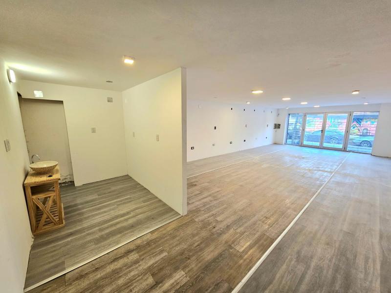 *Salón comercial (Local con aberturas de aluminio con vidrio, piso vinilico y baño con inodoro y bacha). Desde el local se puede acceder al galpón internamente;