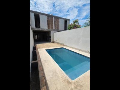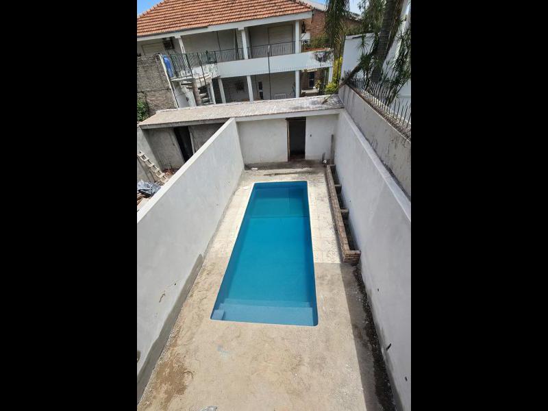 *Patio trasero parquizado con pileta de material;