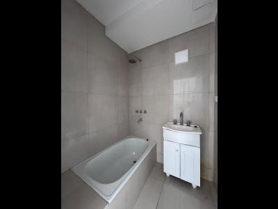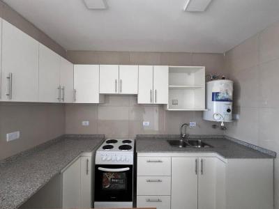 Equipada con muebles de melamina blanca (alacena y bajo mesada)
